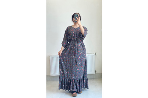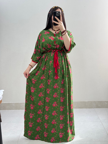 پیراهن بلند نخی گل ریز کیمونو تنظیم کمر مناسب انواع دورهمی و بیرون کد ١٠٩
