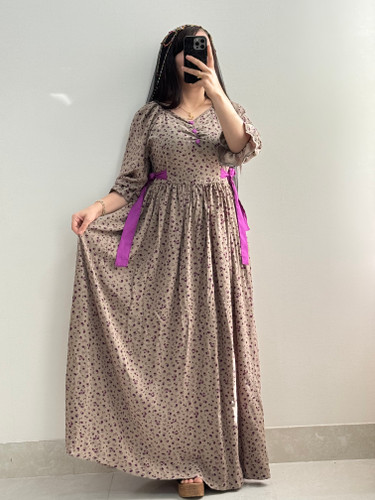 پیراهن بلند گلدار نخی مدل افسانە کد ١٧٩