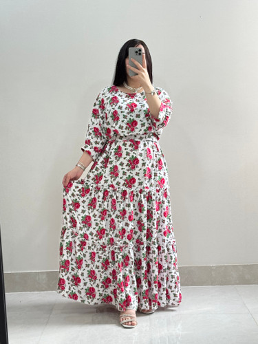پیراهن بلند گلدار نخی مدل پریماە چیندار کد ١٧٨