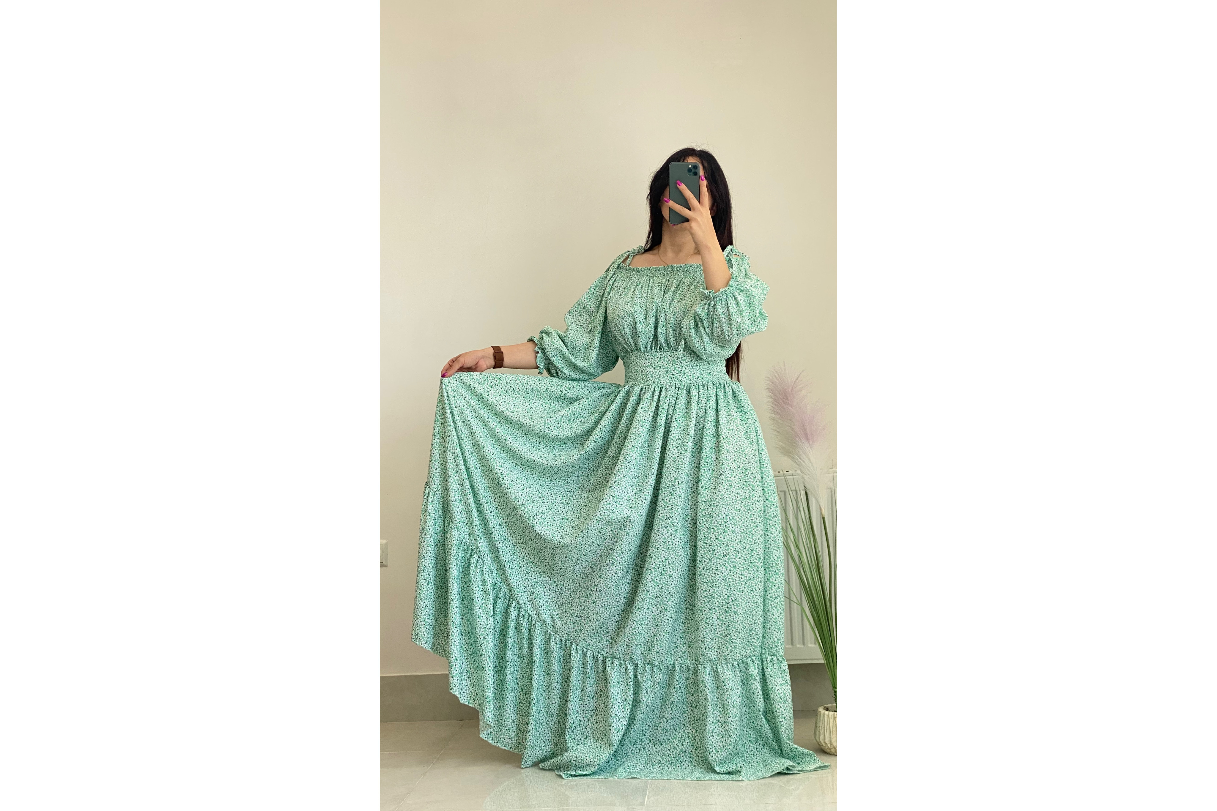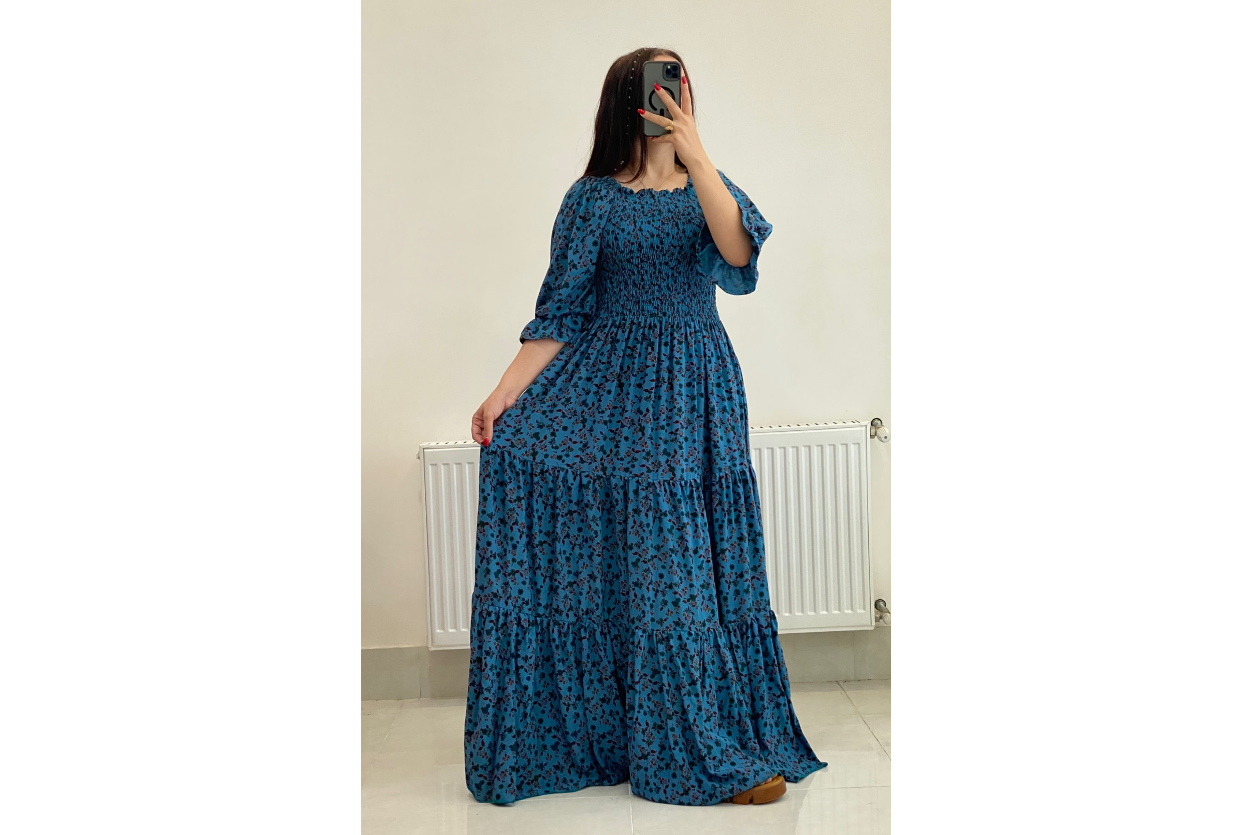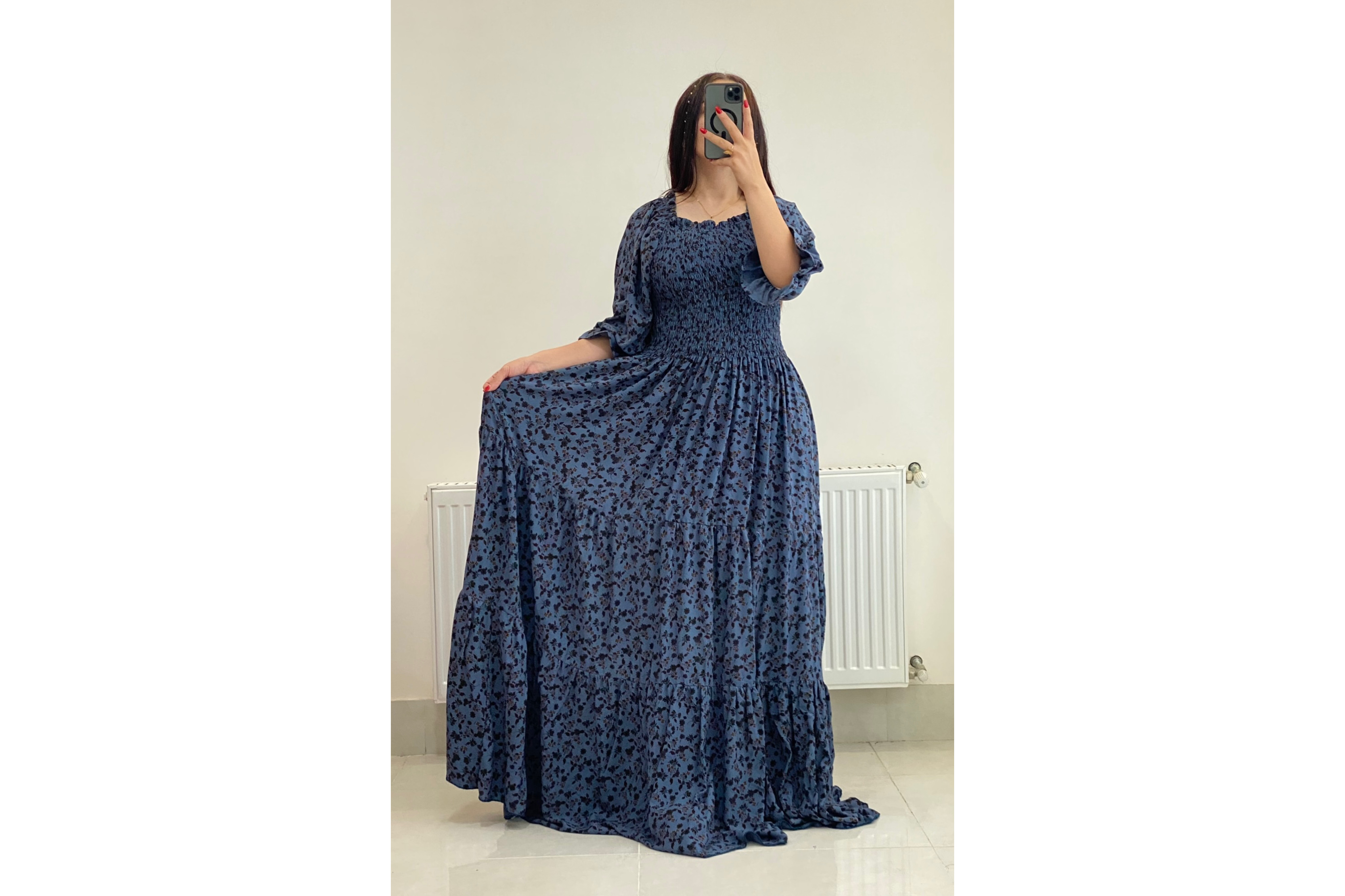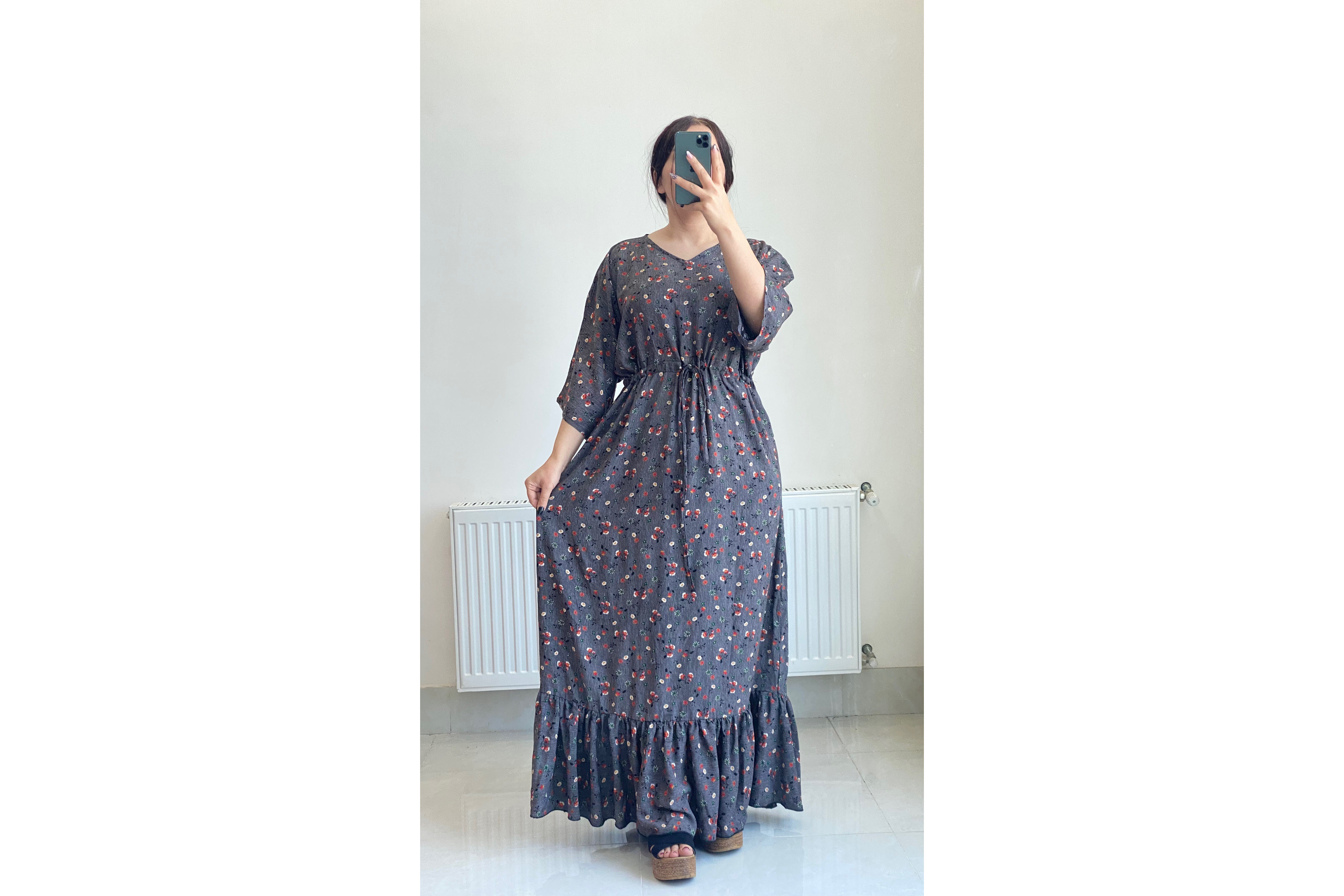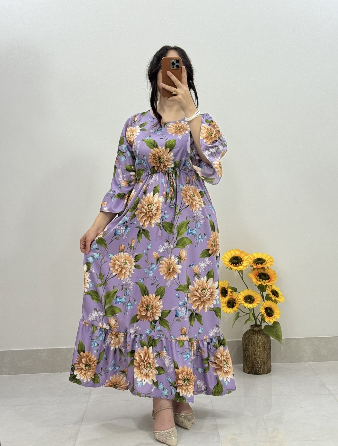 پیراهن بلند گلدار نخی مدل افسانە کد ١٧٩
