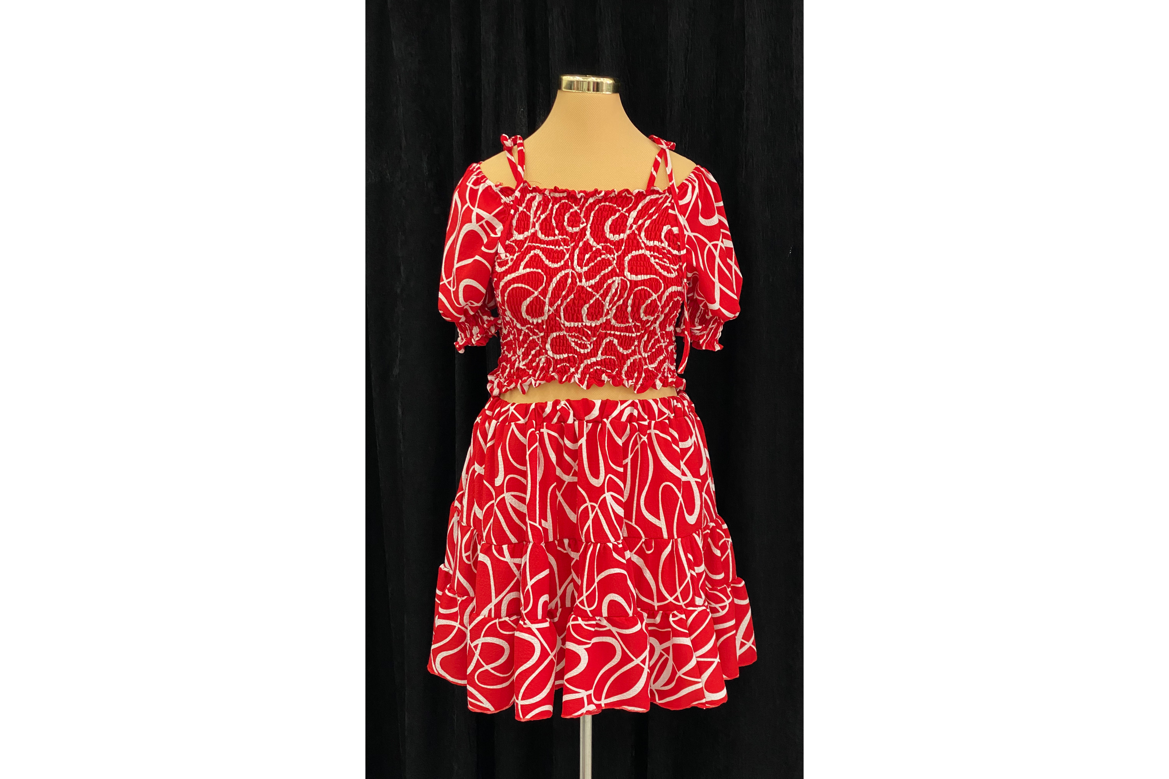 ست دو تیکە دامن و کراپ بدون استین کرپ خاص تولد یا رقص کد ١٠٢