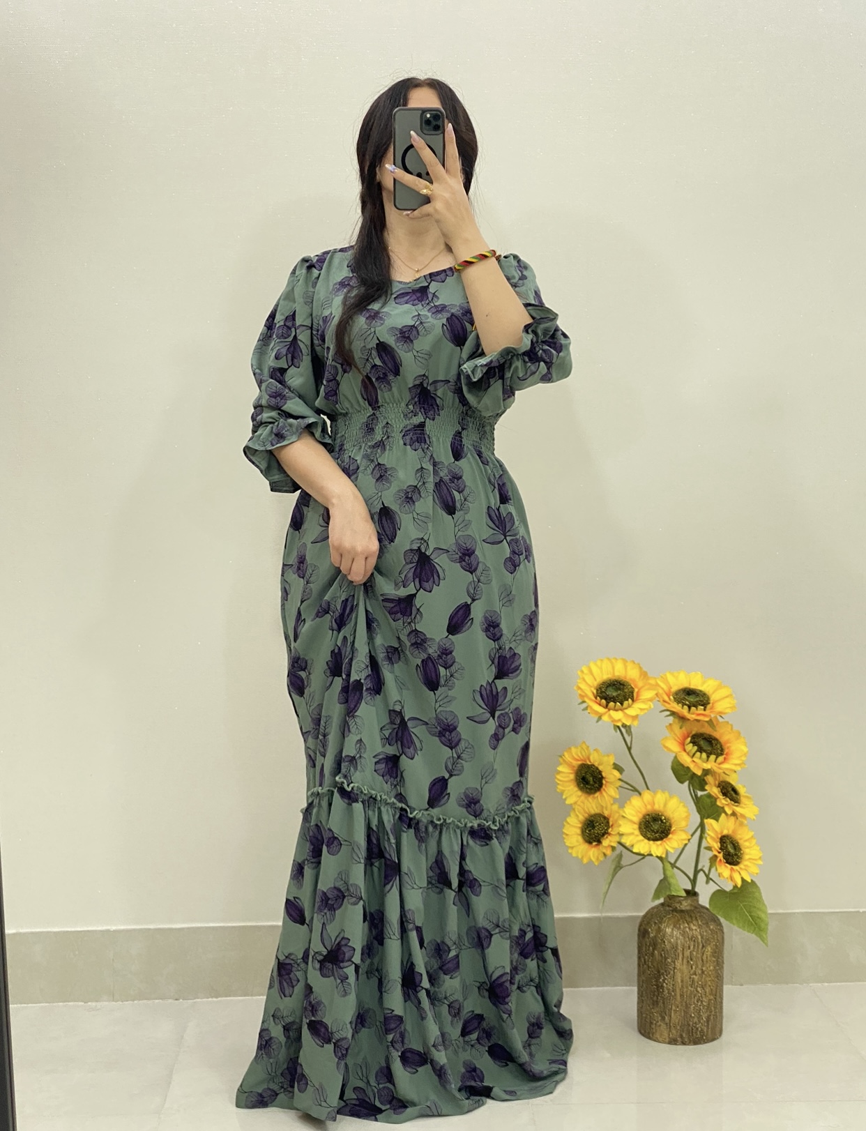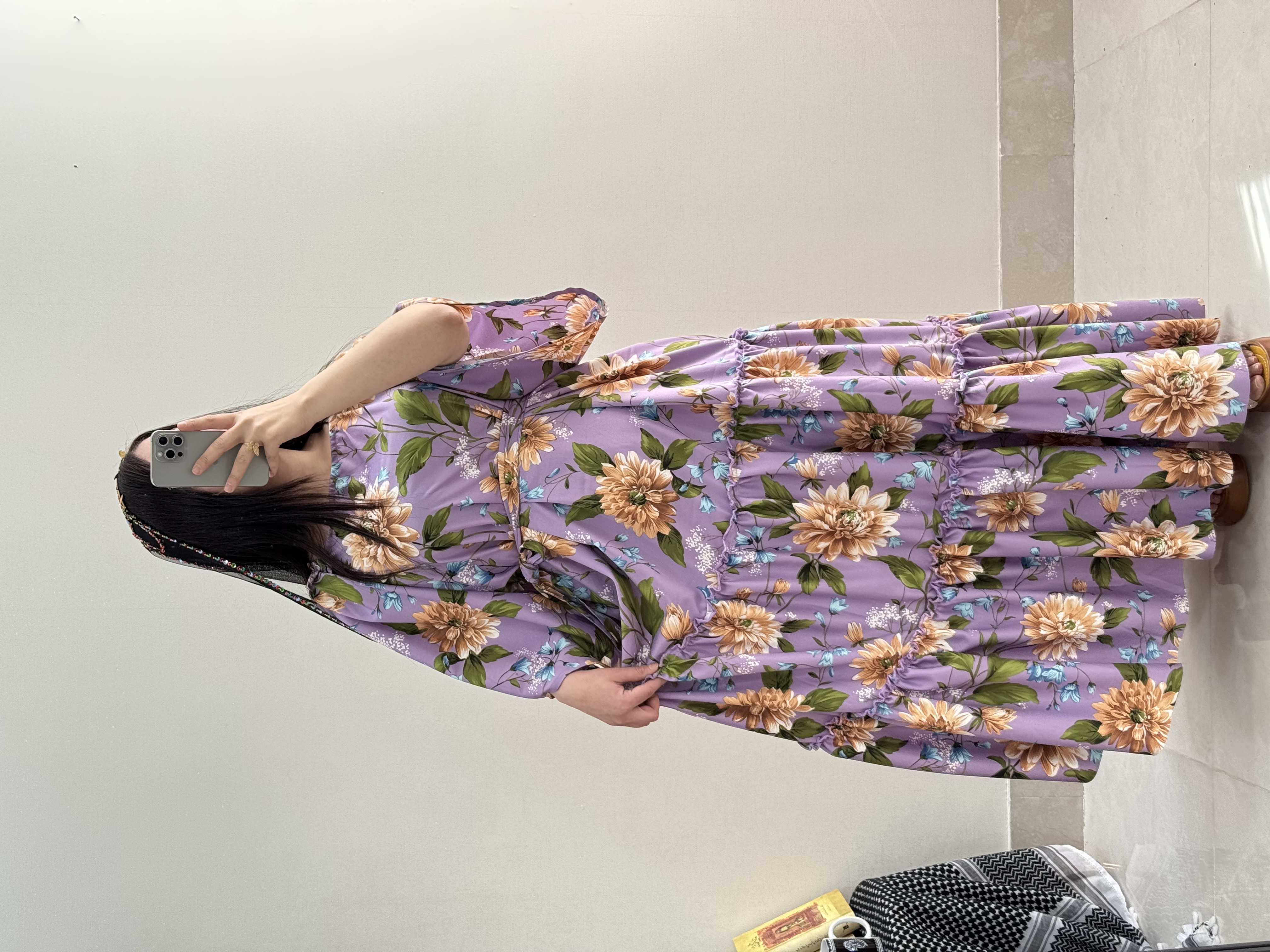 پیراهن گلدار بلند بیرونی و دورهمی مناسب بارداری کد ١٧٠