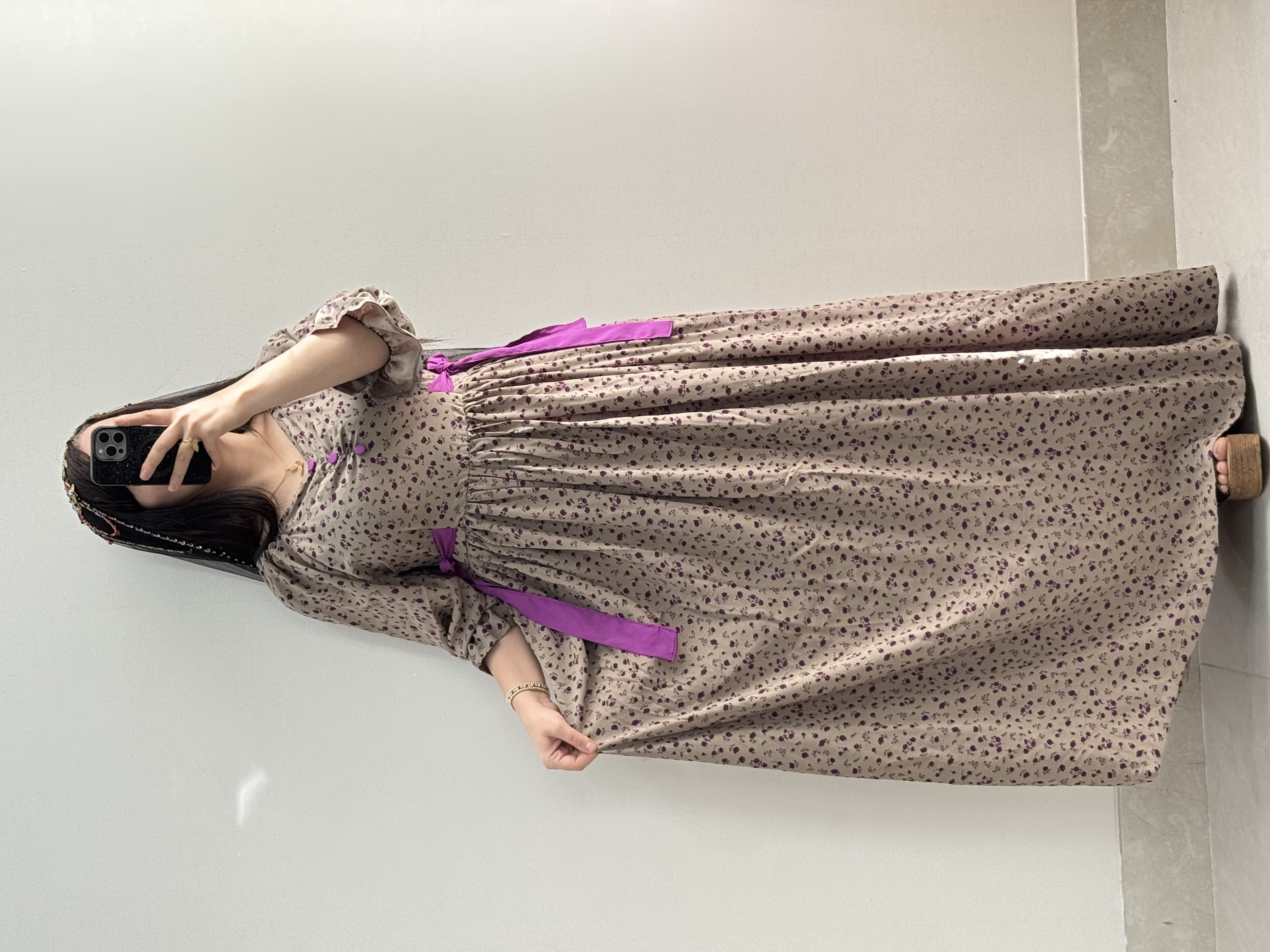 پیراهن بلند نخی گل ریز کیمونو تنظیم کمر مناسب انواع دورهمی و بیرون کد ١٠٩