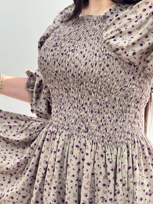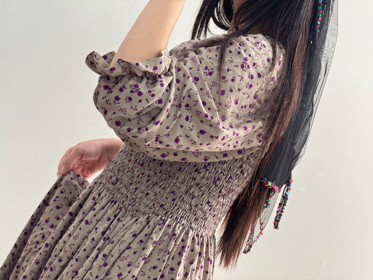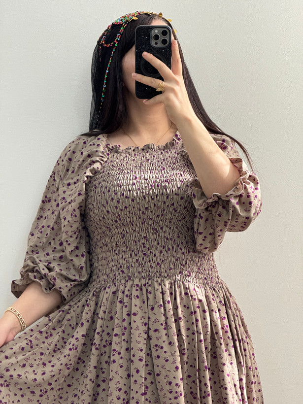 پیراهن گلدار نخی بلند مدل پریماە سادە کد ١٧٦