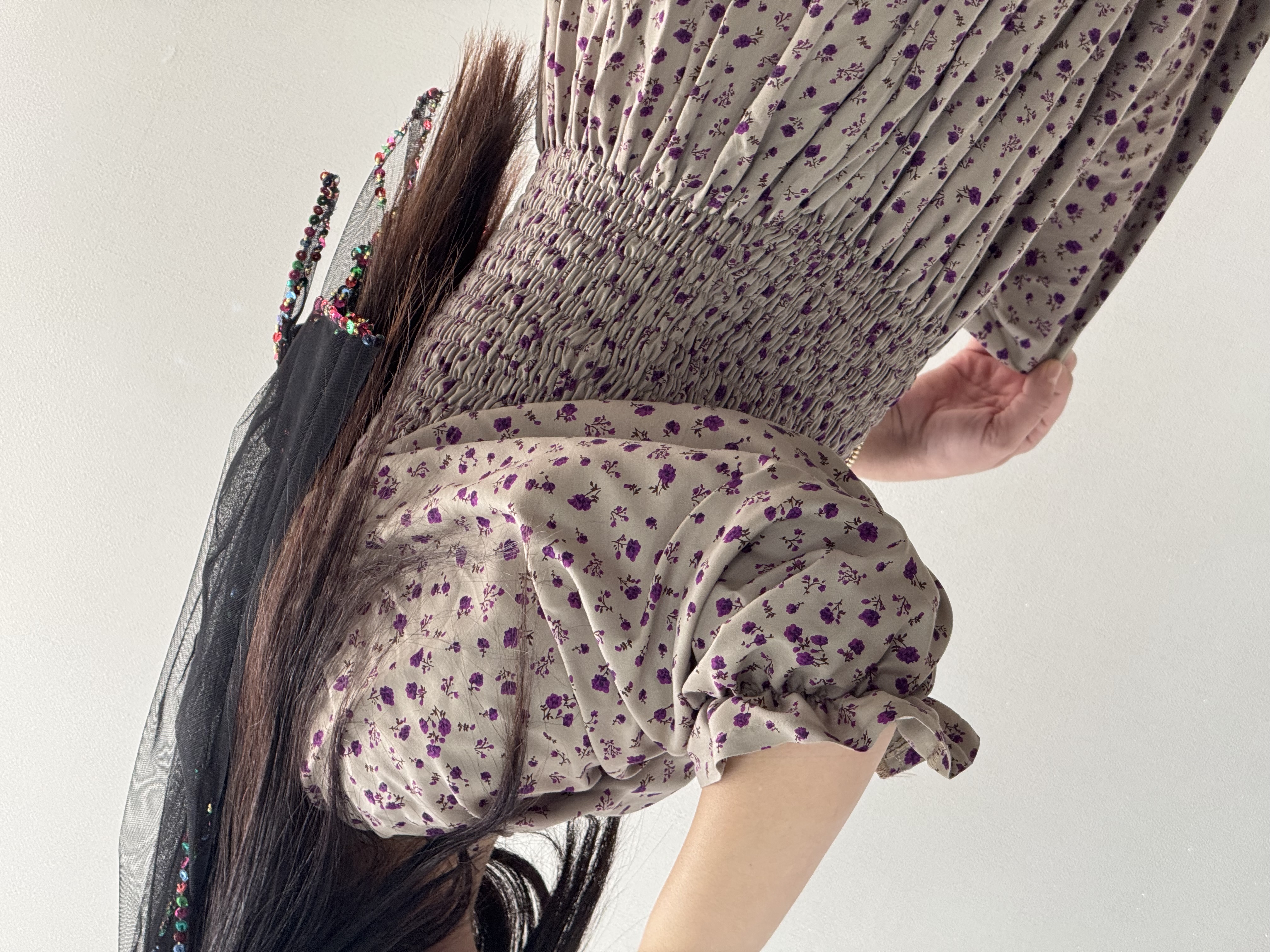 پیراهن گلدار نخی بلند مدل پریماە سادە کد ١٧٦