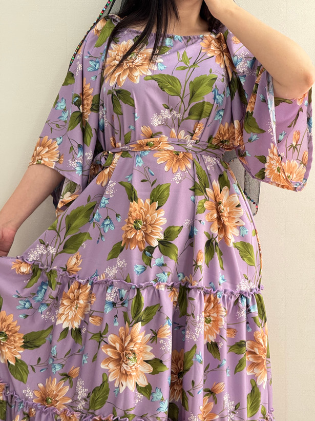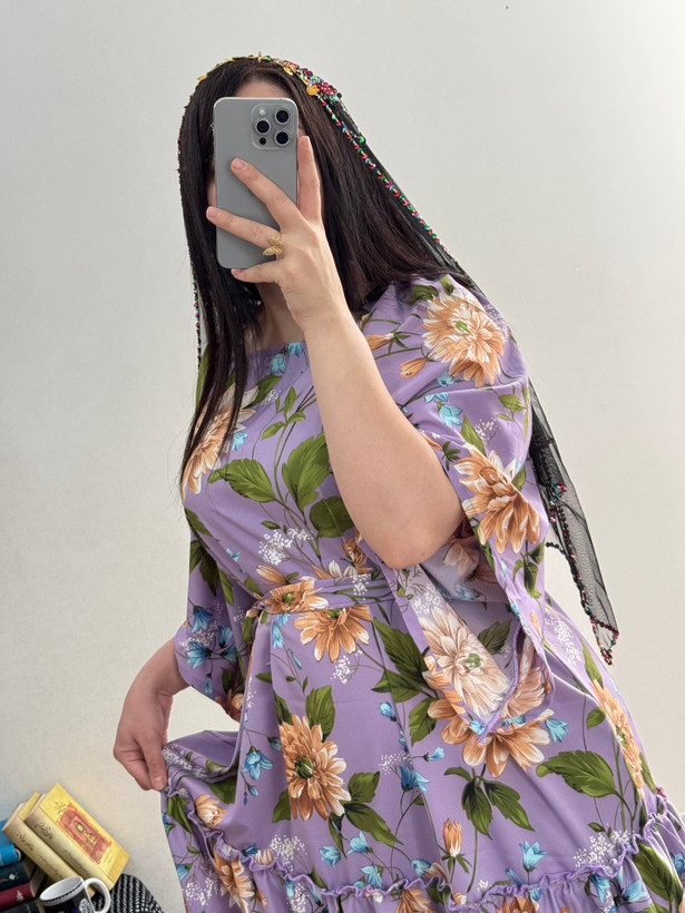 پیراهن گل گلی کرپ بلند چیندار کد ١٩٤