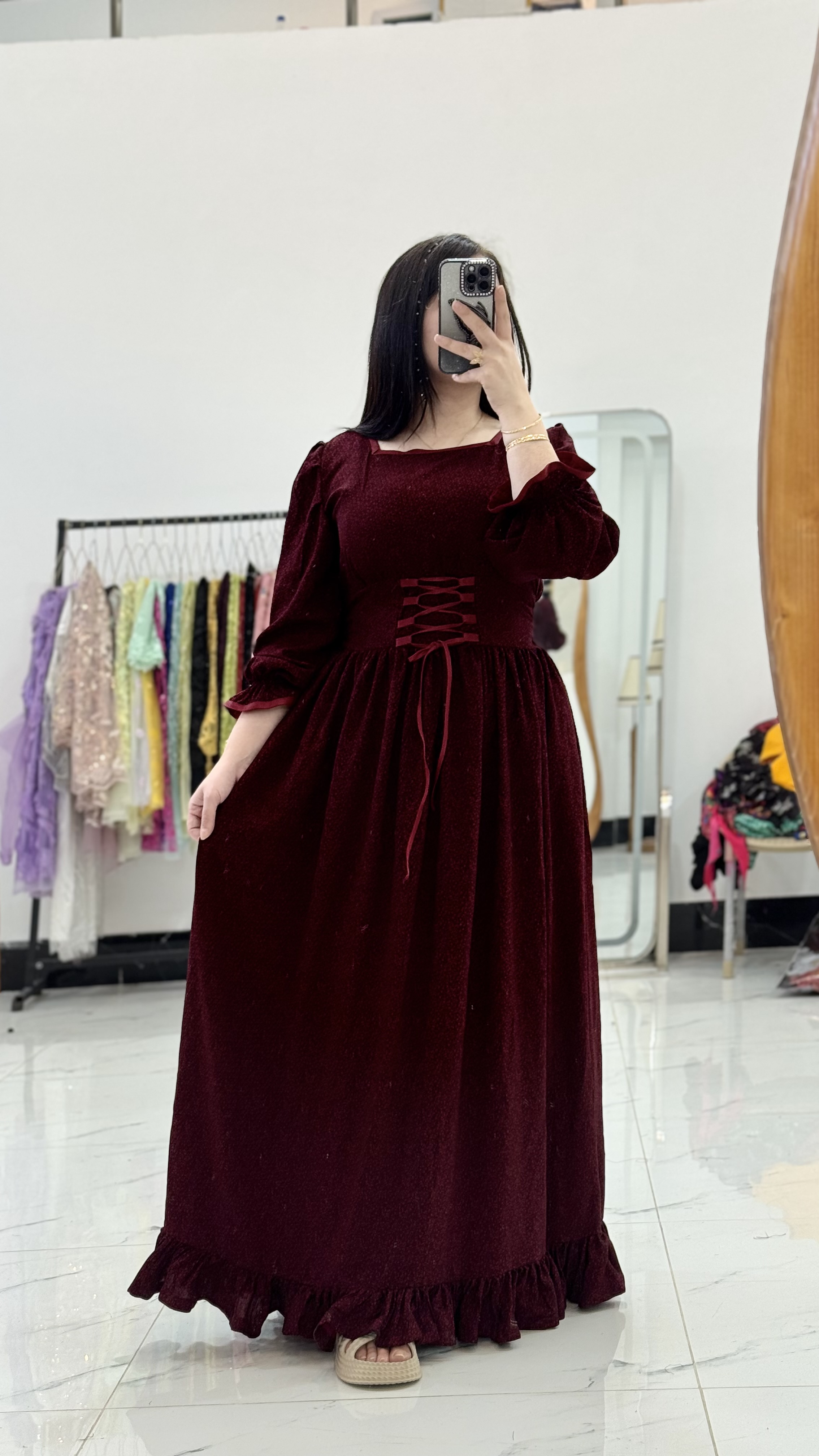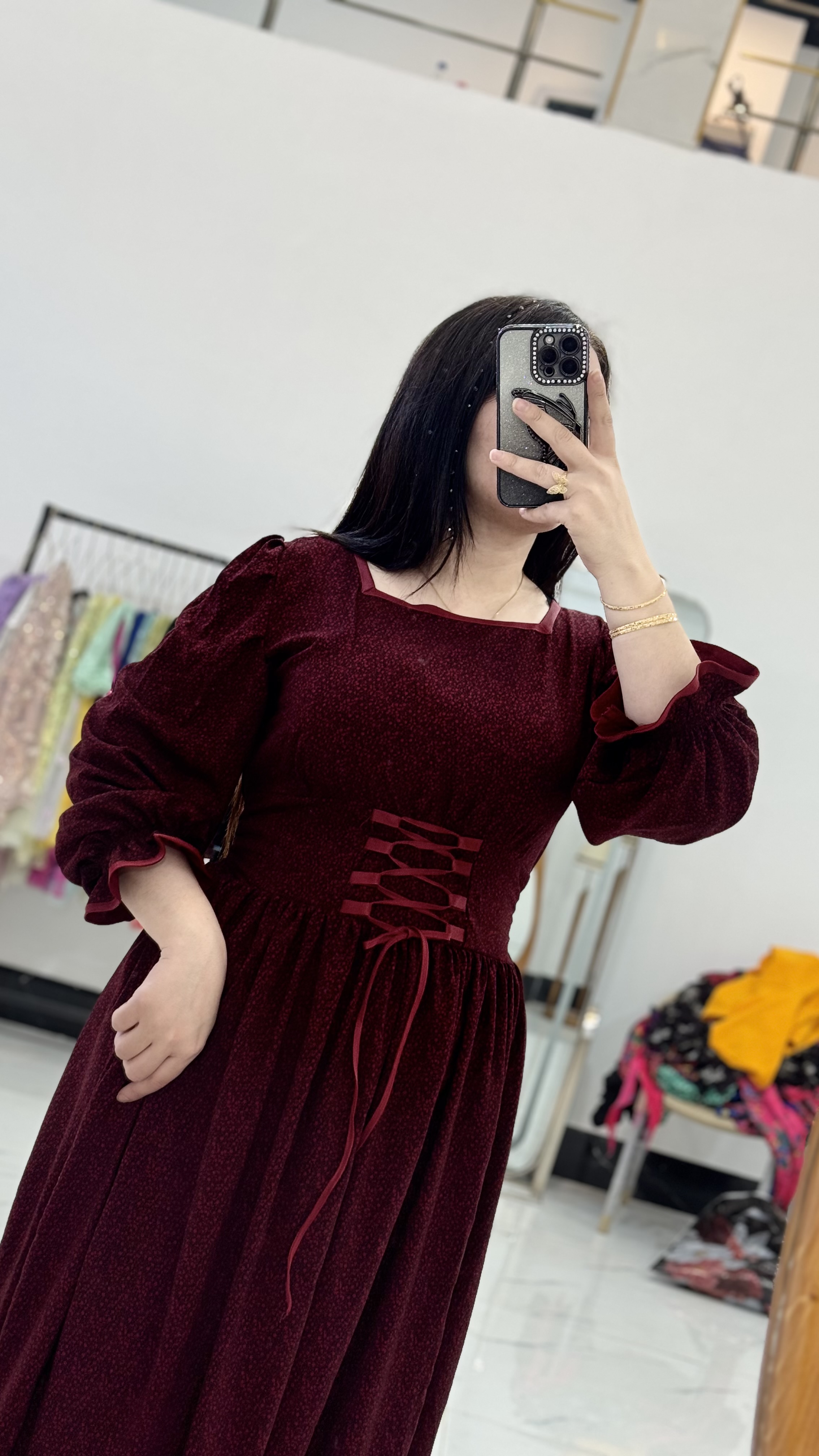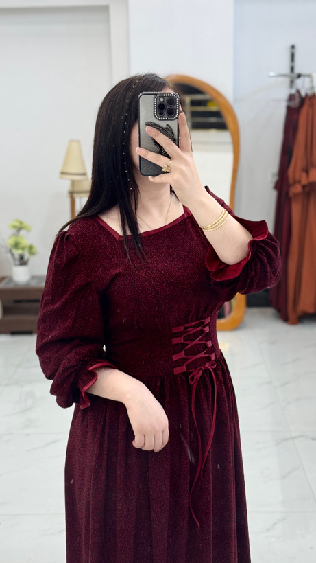پیراهن گلدار مهمونی و دورهمی بنددار کد ٢٣٦