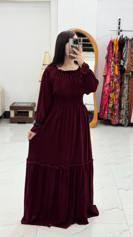 پیراهن بلند مشکی گلدار با گل ریز قرمز مدل نفس کد ٢٣٨