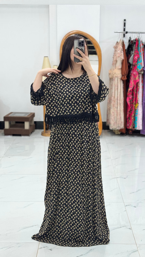 ست دوتیکە کراپ و سارافون نخی بلند کد ٢٤٤