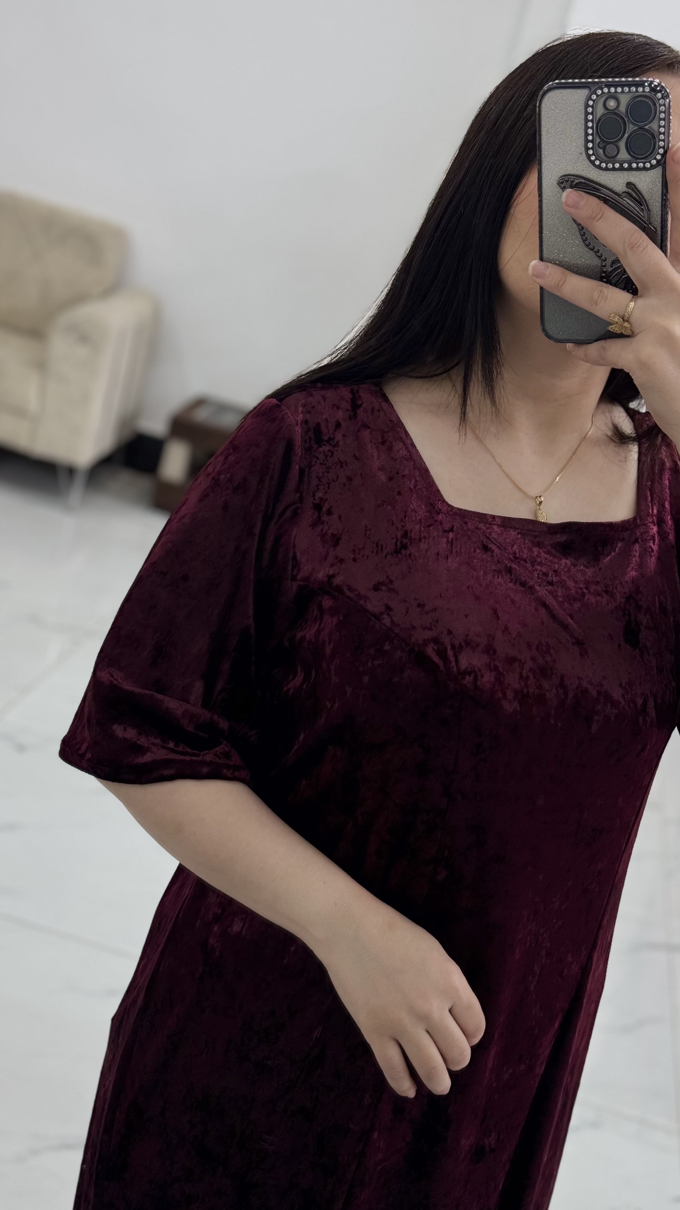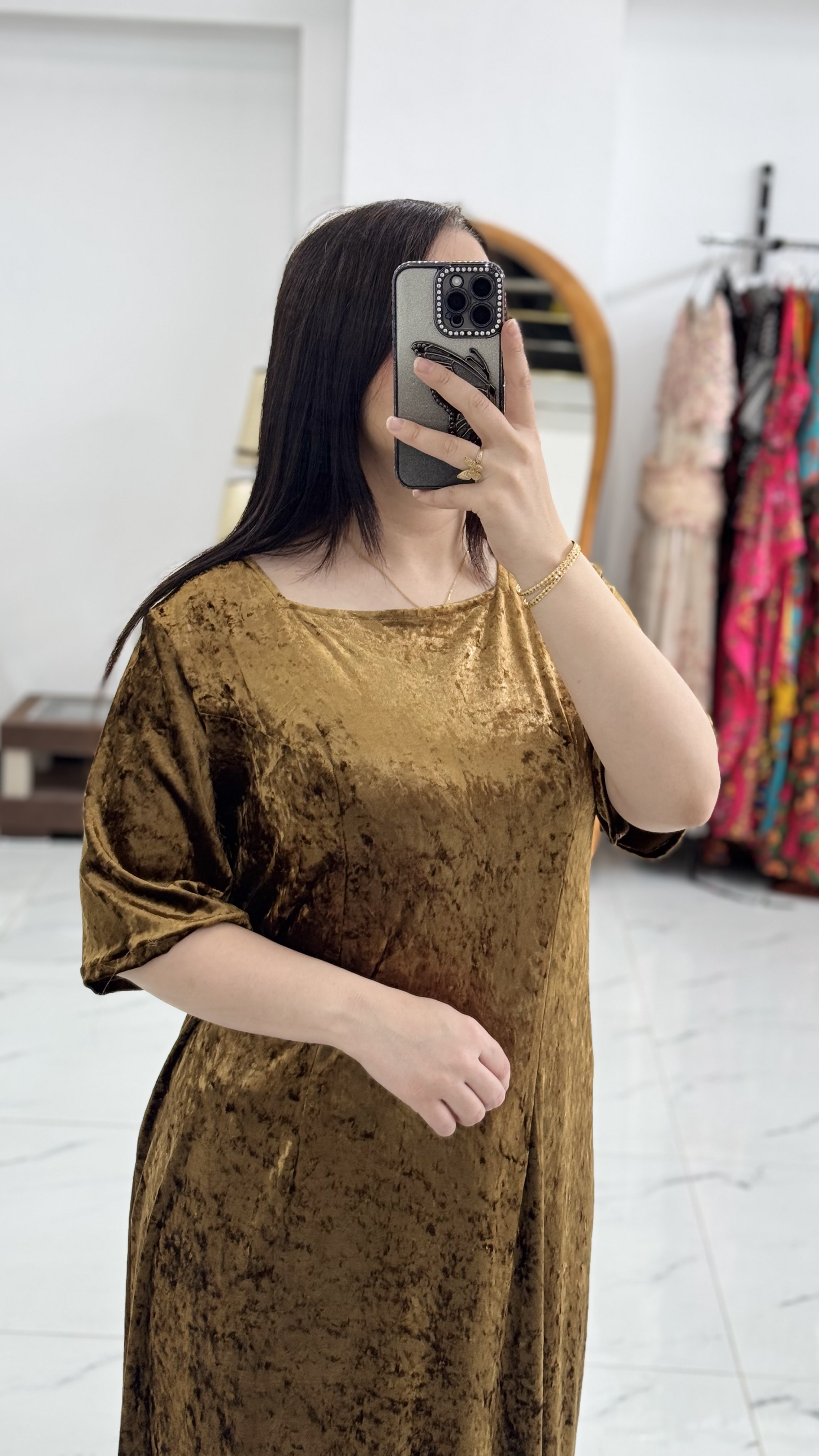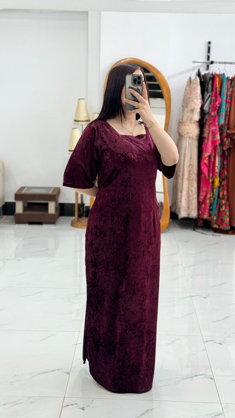 پیراهن بلند چاکدار مخمل ابروبادی کد ٢٥٠