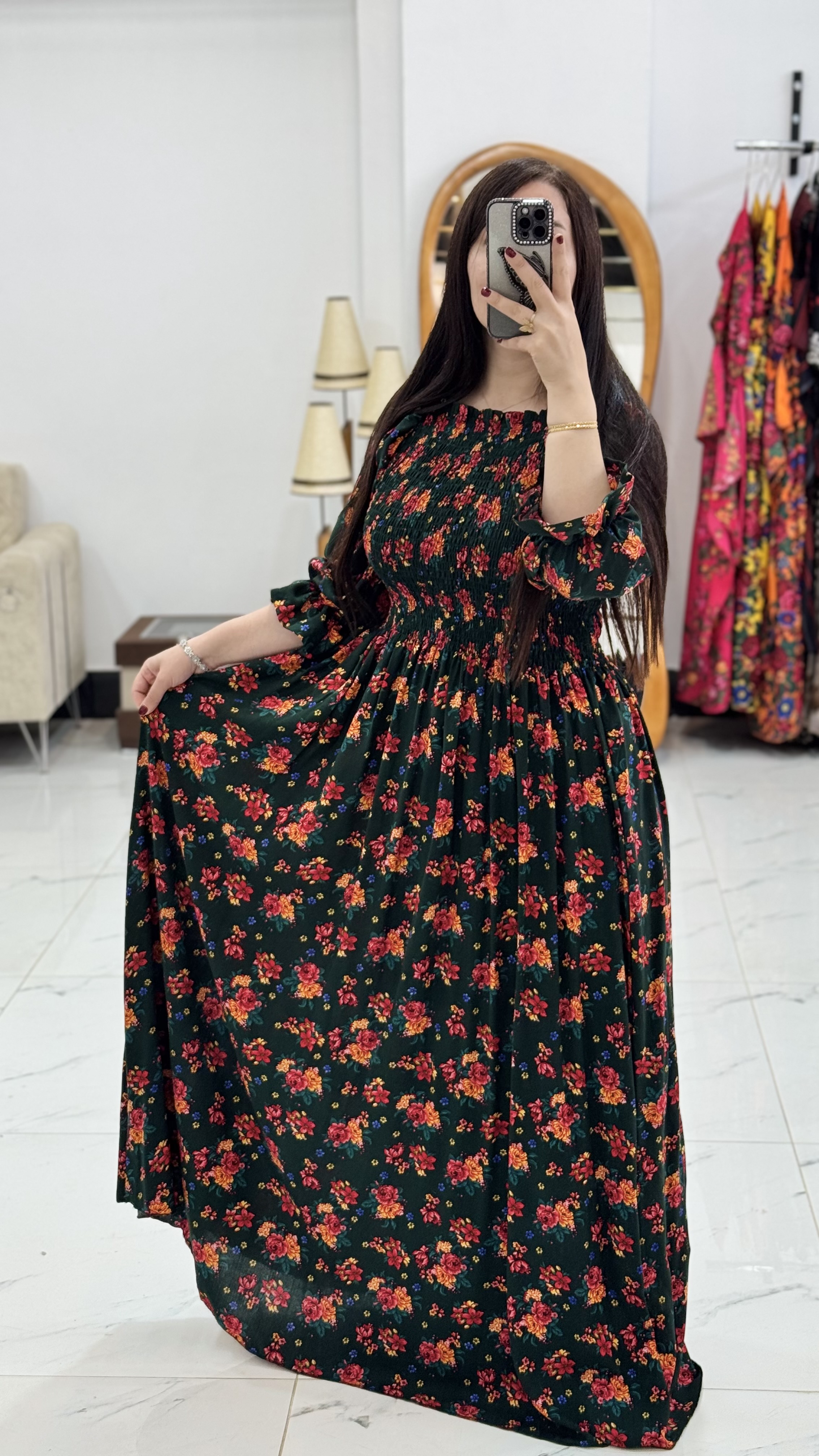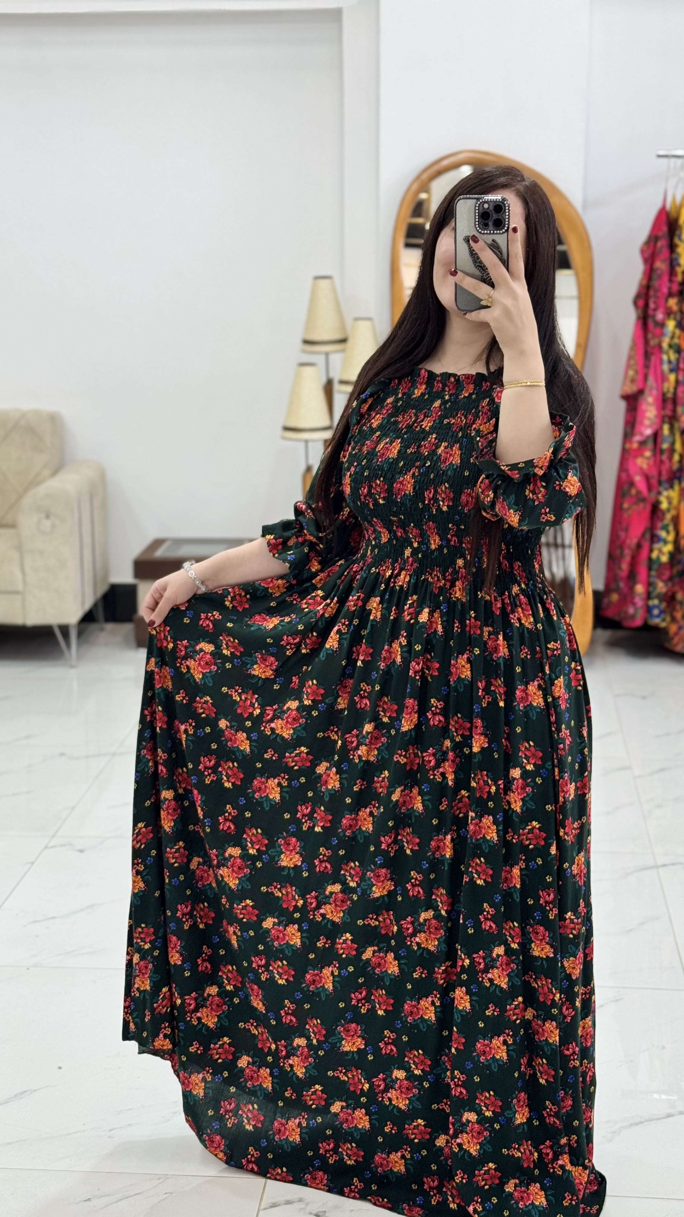 پیراهن بلند نخی کشی و بلند مدل پریماە سادە و بدون چین مناسب بارداری و شیردهی کد ٢٦٤