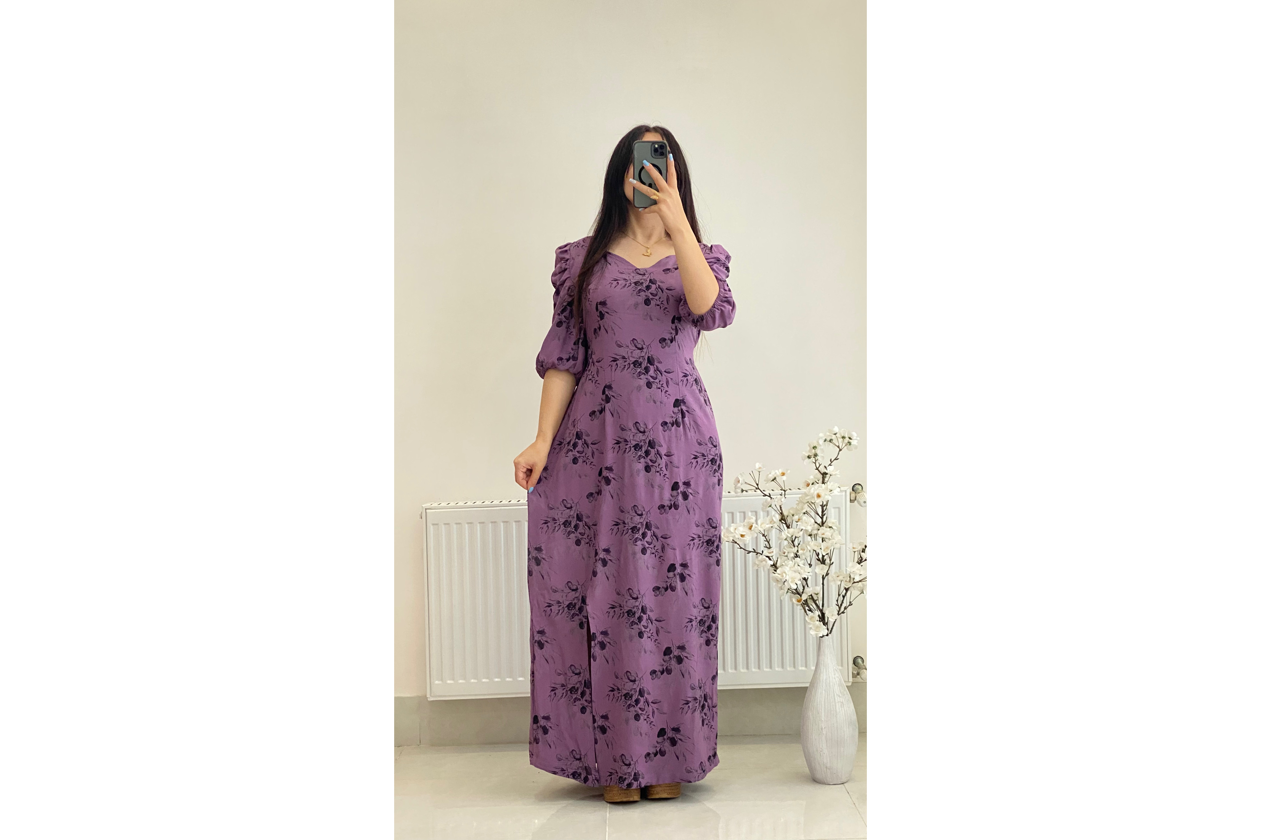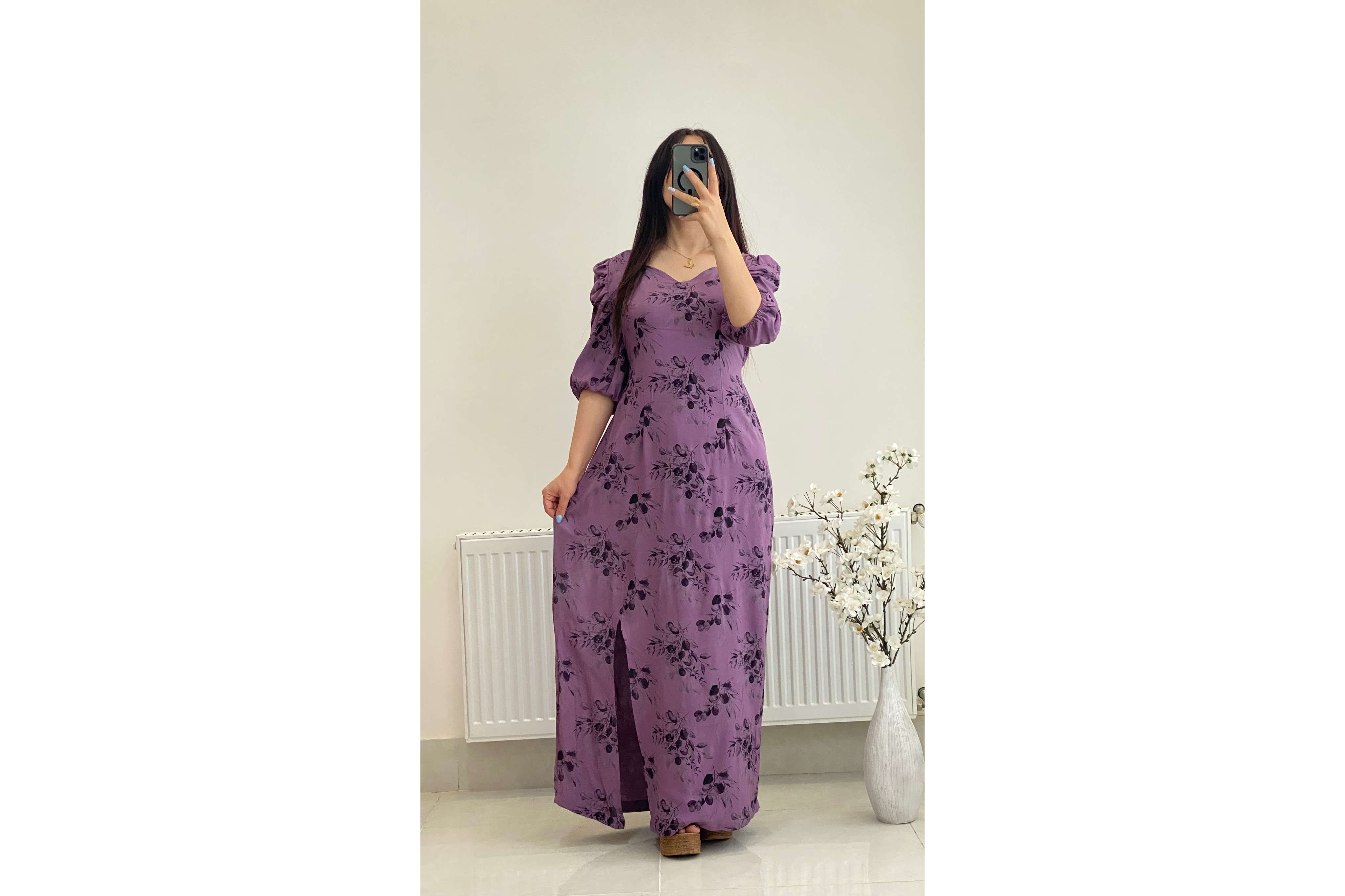 پیراهن چاکدار نیلوفر نخی مناسب مهمونی و خونگی کد ٥٨